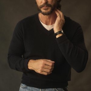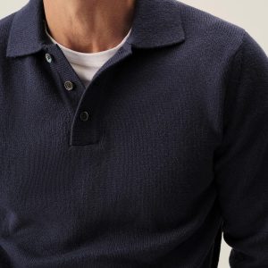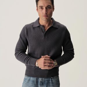 Classic fit short sleeve sweater tee with a straight hem. Yarn-dyed 16 gauge cotton jersey features light slub texture. Features double layer 1×1 ribbing at the collar and rib finishing at the cuffs and hem. Constructed with hand-linked seams for improved durability.