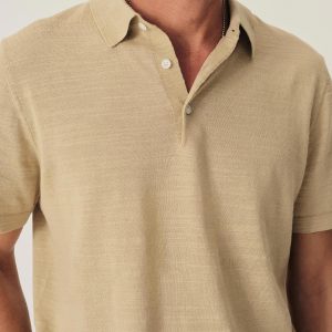 Classic fit sweater polo in yarn-dyed 16 gauge cotton jersey with light slub texture. Features a three-button closure and rib finishing at the cuffs and hem. Constructed with hand-linked seams for improved durability.