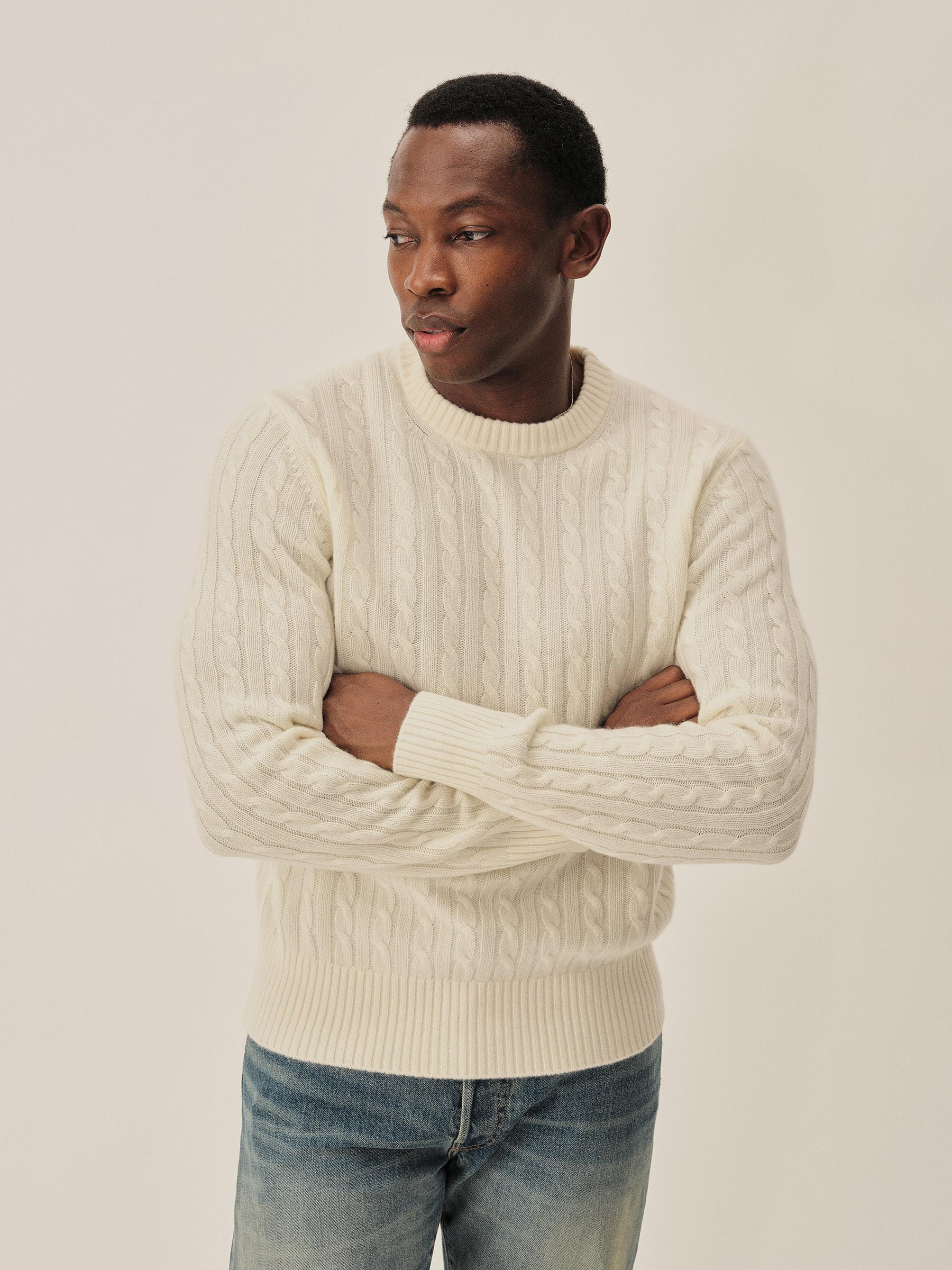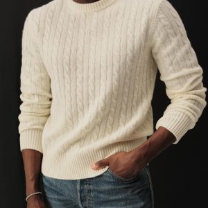 The California Cashmere Cable Crew is spun from 100% long-staple cashmere and knit in a refined 12-gauge cable pattern. Inspired by the casual poise of 1960s Ivy League sweaters, it’s finished with yarn-dyed ribbing at the neck, cuffs, and hem, and garment-rinsed for a soft, lived-in feel.