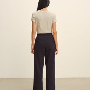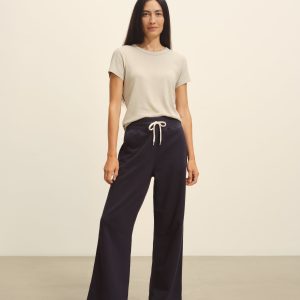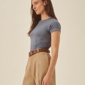 Slim fit crewneck tee cut from a supersoft 130 GSM blend of bamboo, cotton, and wool. Features a straight hem, a self bound neck, and raised armholes that hug the contours of the shoulders. Garment washed for a lived-in feel.