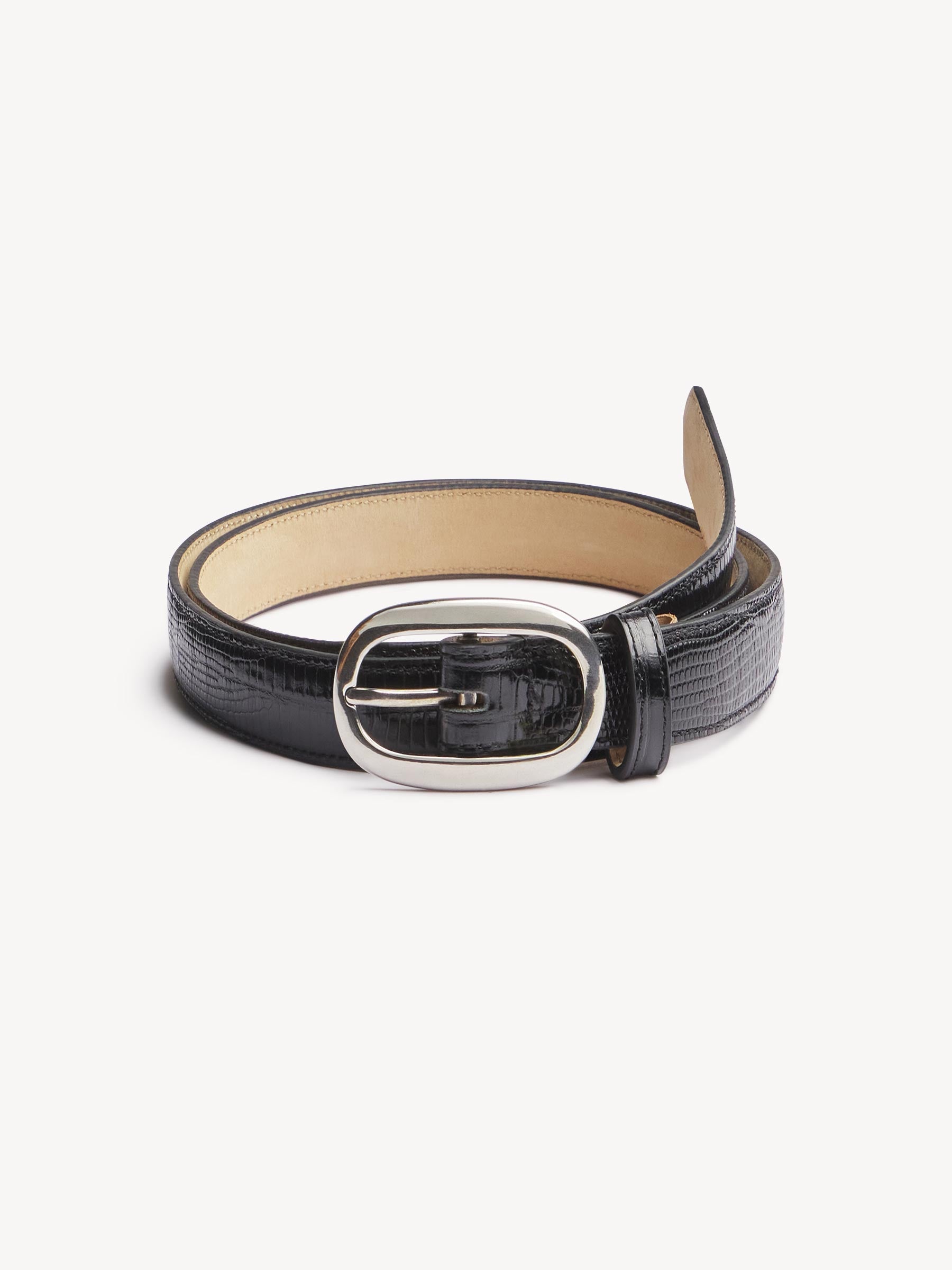 A classic dress belt made from 100% vegetable-tanned steerhide, padded with a soft nubuck lining. Finished with a solid metal, hand-burnished chrome buckle that will develop a rich patina over time. Perfect for dressing up denim or pairing with tailored looks. 1″ wide. Standard fit — take your usual belt size.