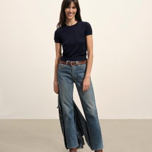 Crewneck sweater knit tee with a relaxed, slim fit. Spun from a yarn-dyed blend of merino wool, silk, and cashmere. Garment washed for added softness.