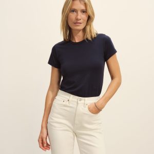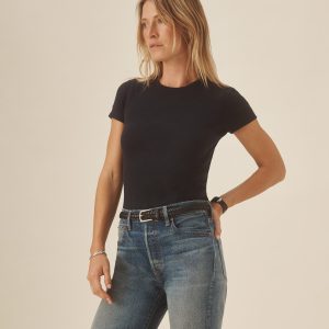 Cut from a heavyweight 310 GSM cotton, this slightly oversized, boxy crewneck tee has a straight hemline that hits right at your natural waist. Double-washed for a soft, smooth texture and consistent fit.