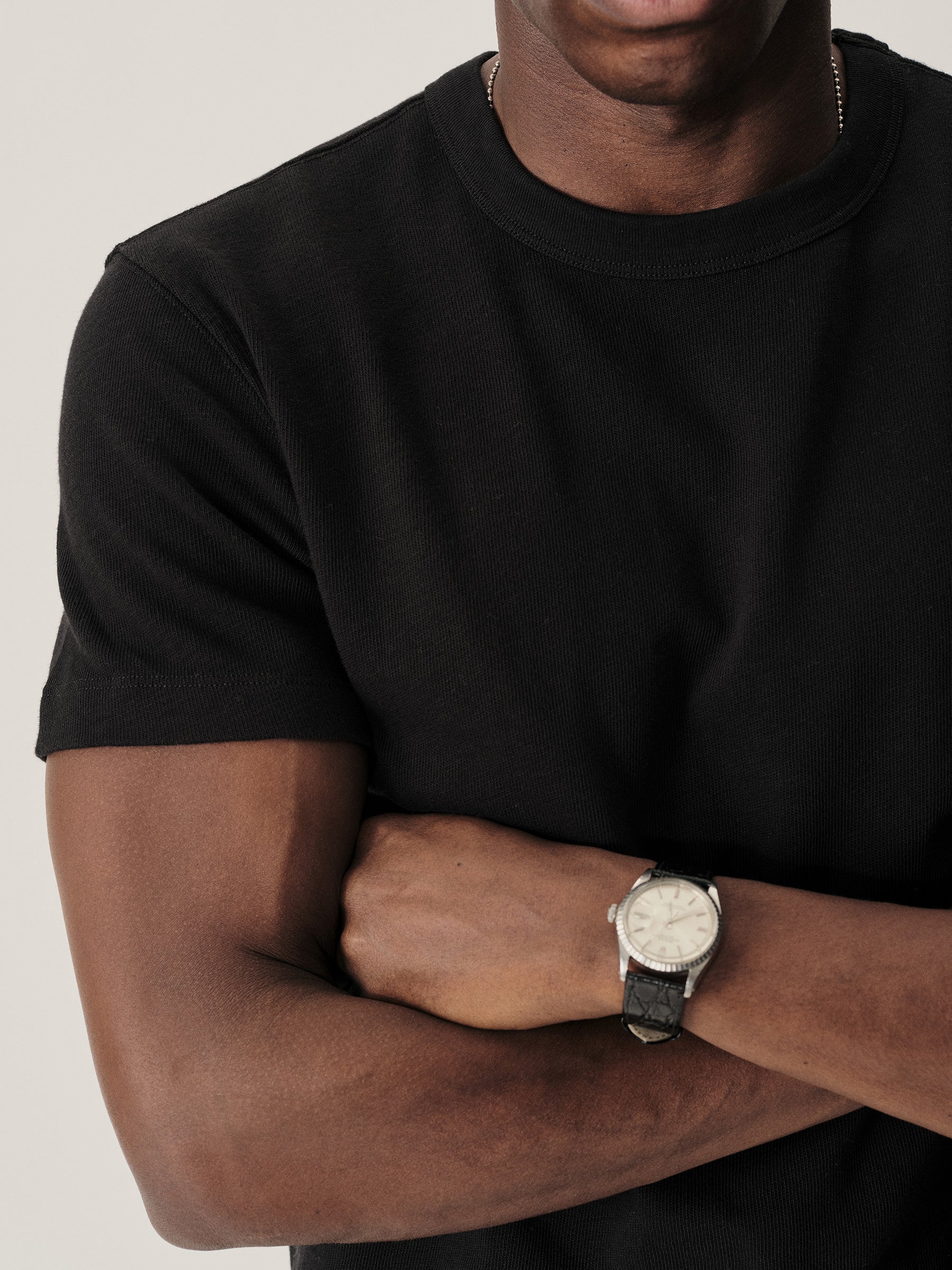 Our full-cut Field Spec Tee, built with hard-wearing, rugby-weight cotton and washed for a soft, lived-in texture.