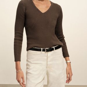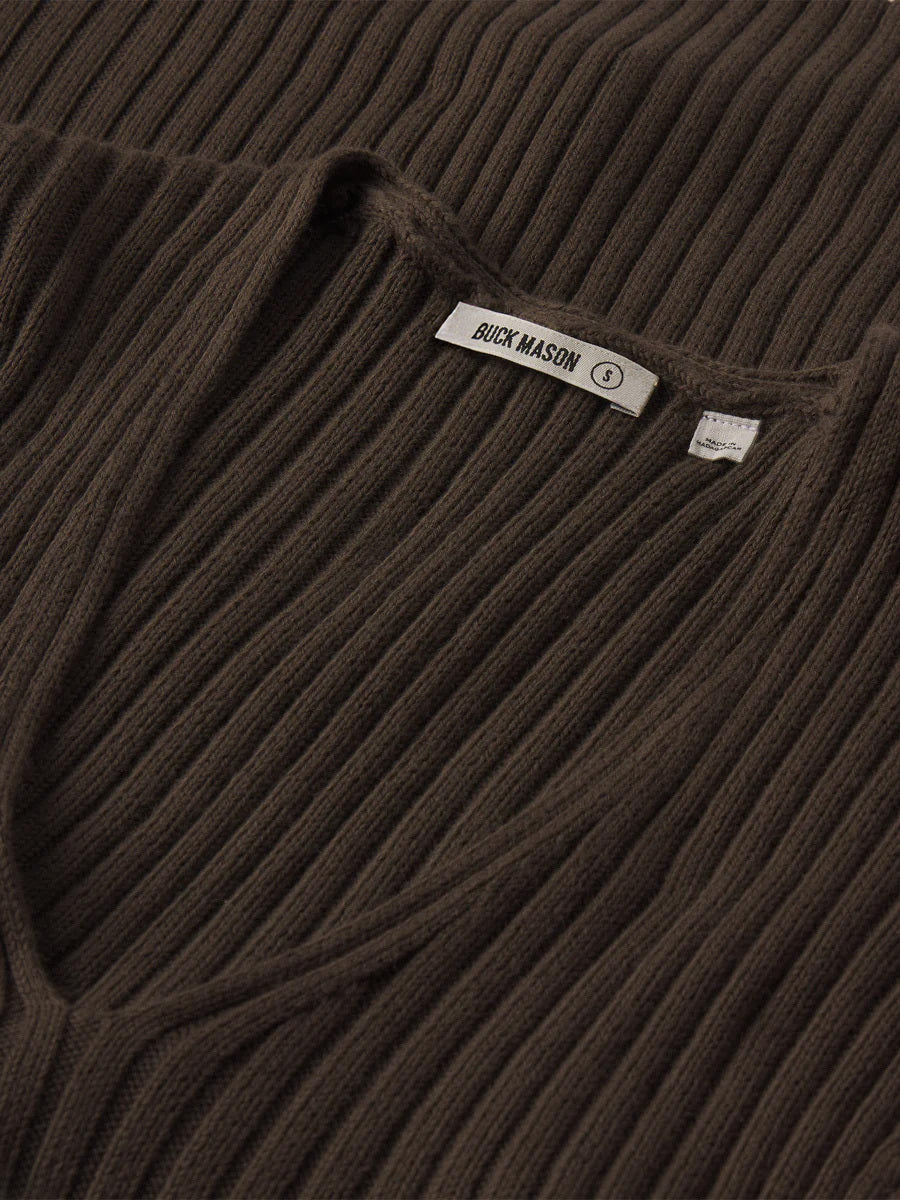 A vintage-inspired V-neck sweater with bracelet-length sleeves, crafted from premium Italian cotton yarn with a 3×3 ribbed structure for added stretch and a snug, flattering fit. Garment-washed for a truly authentic, worn-in feel.