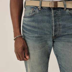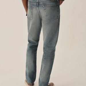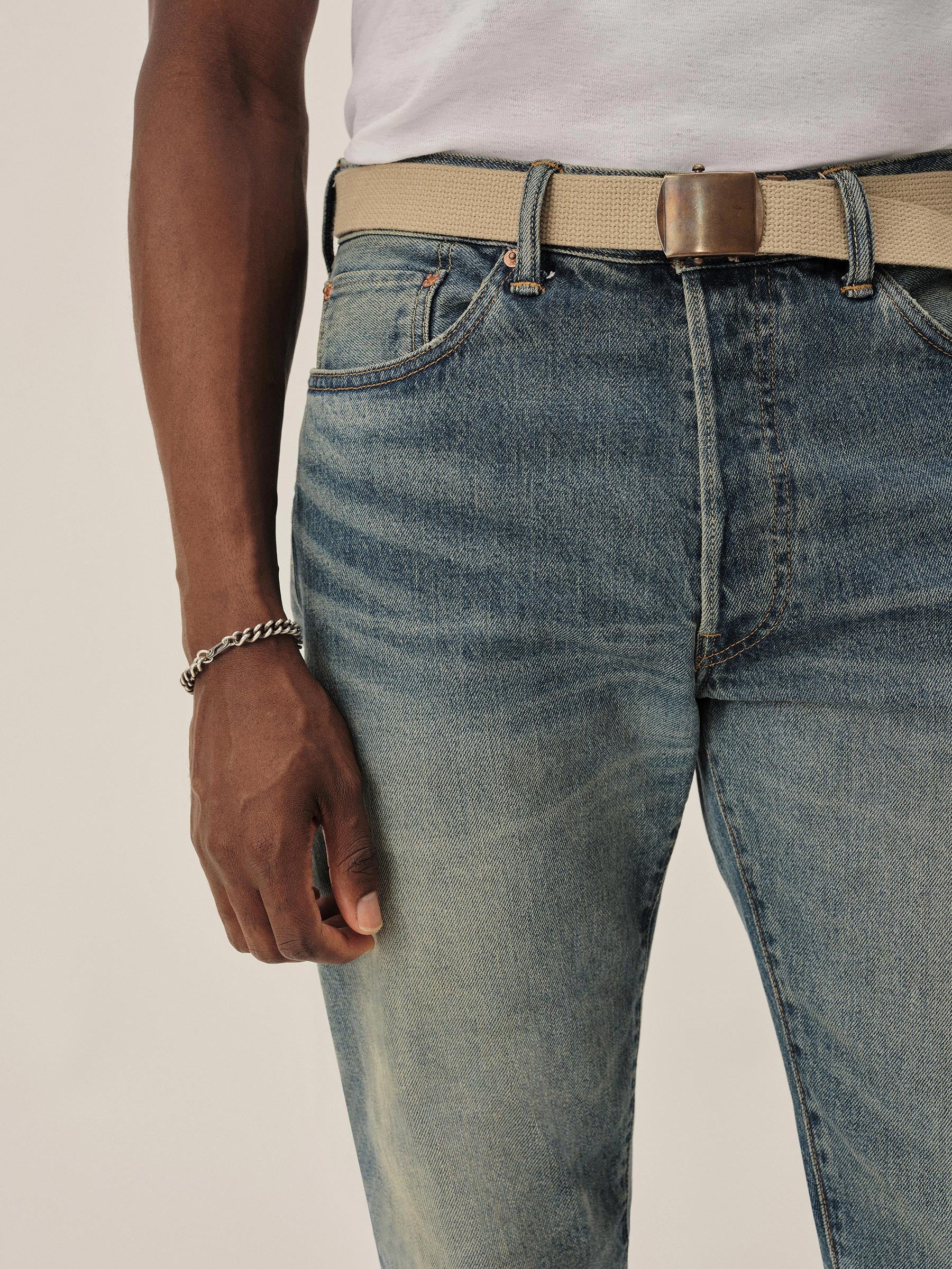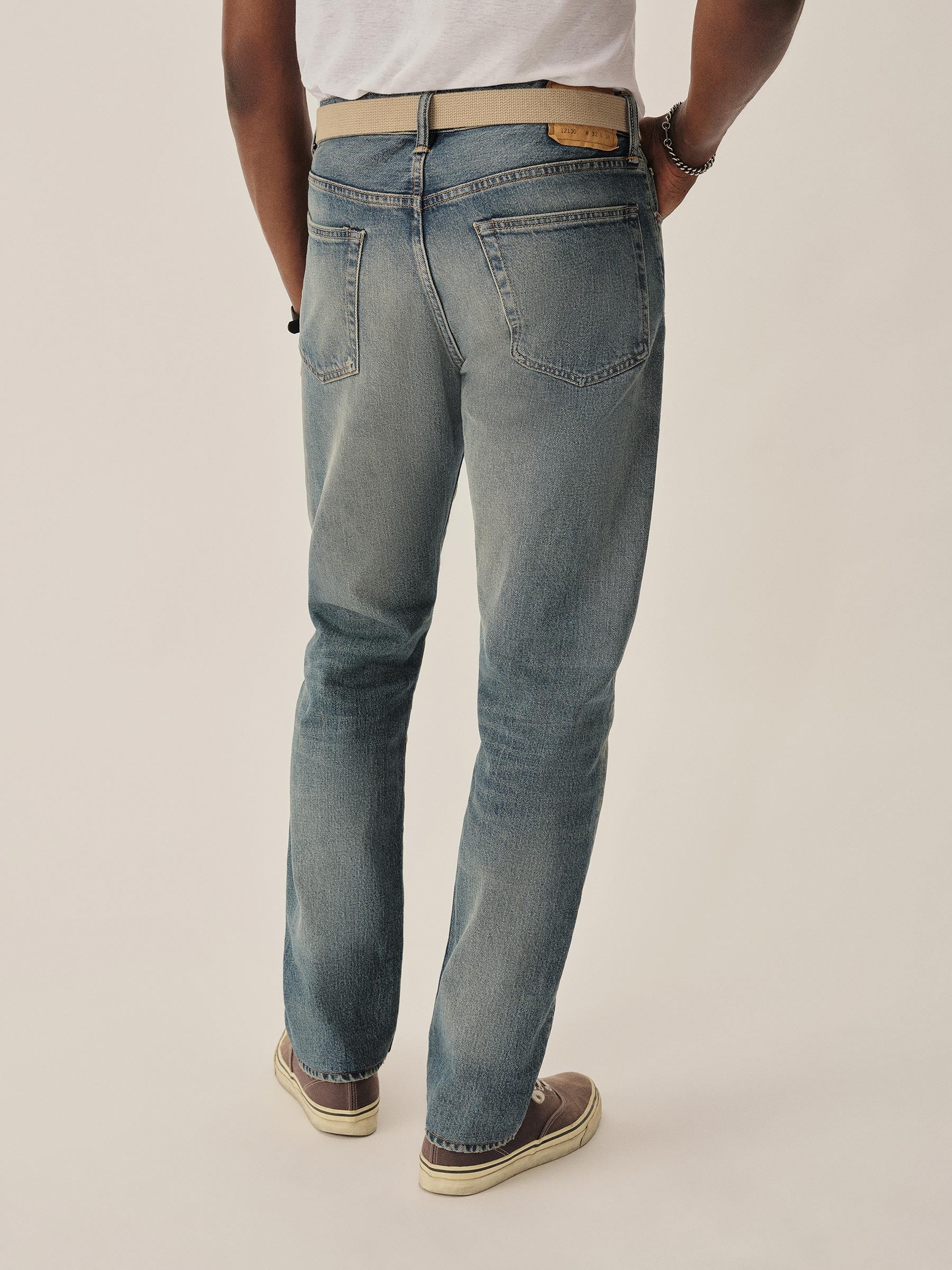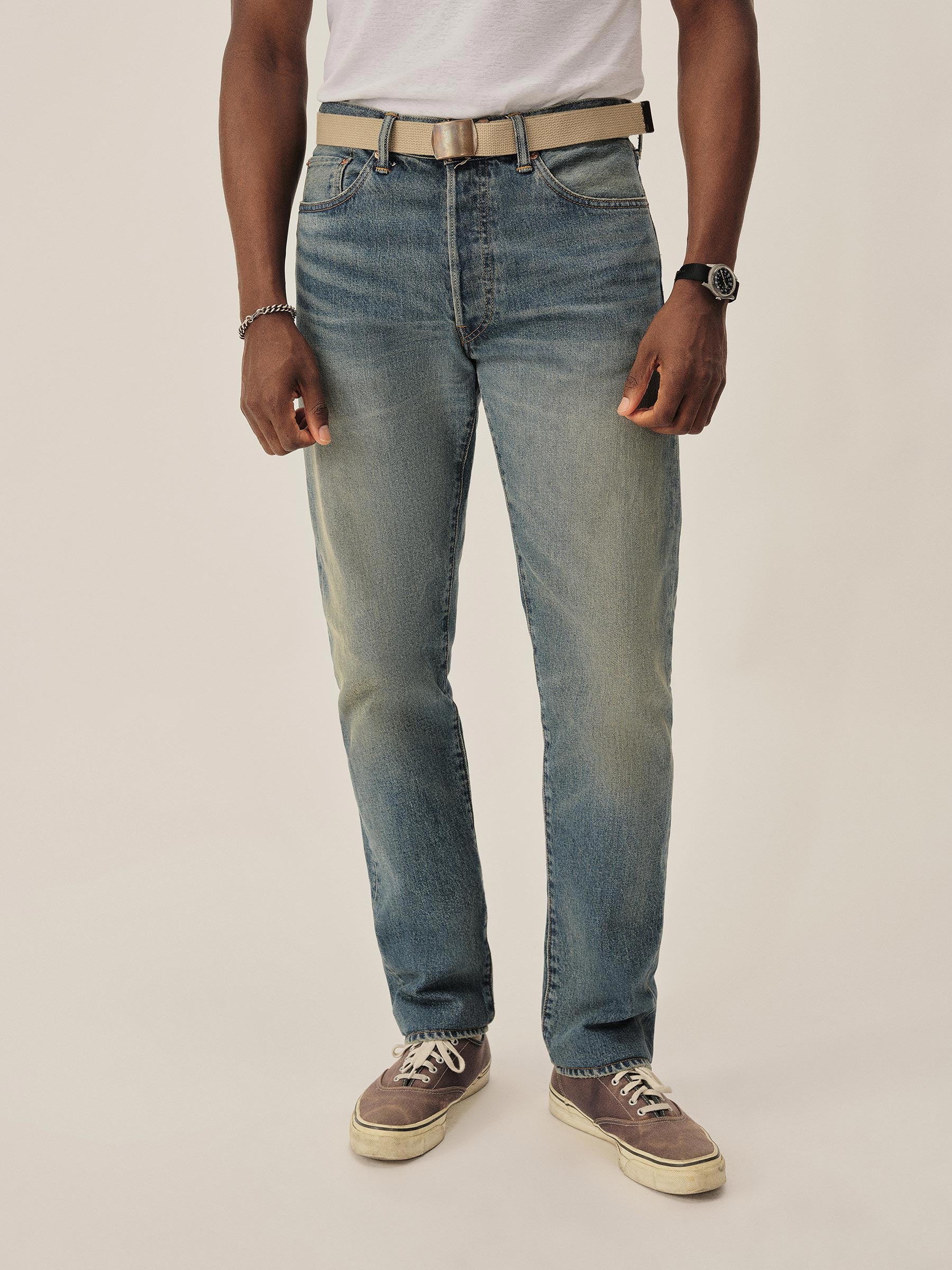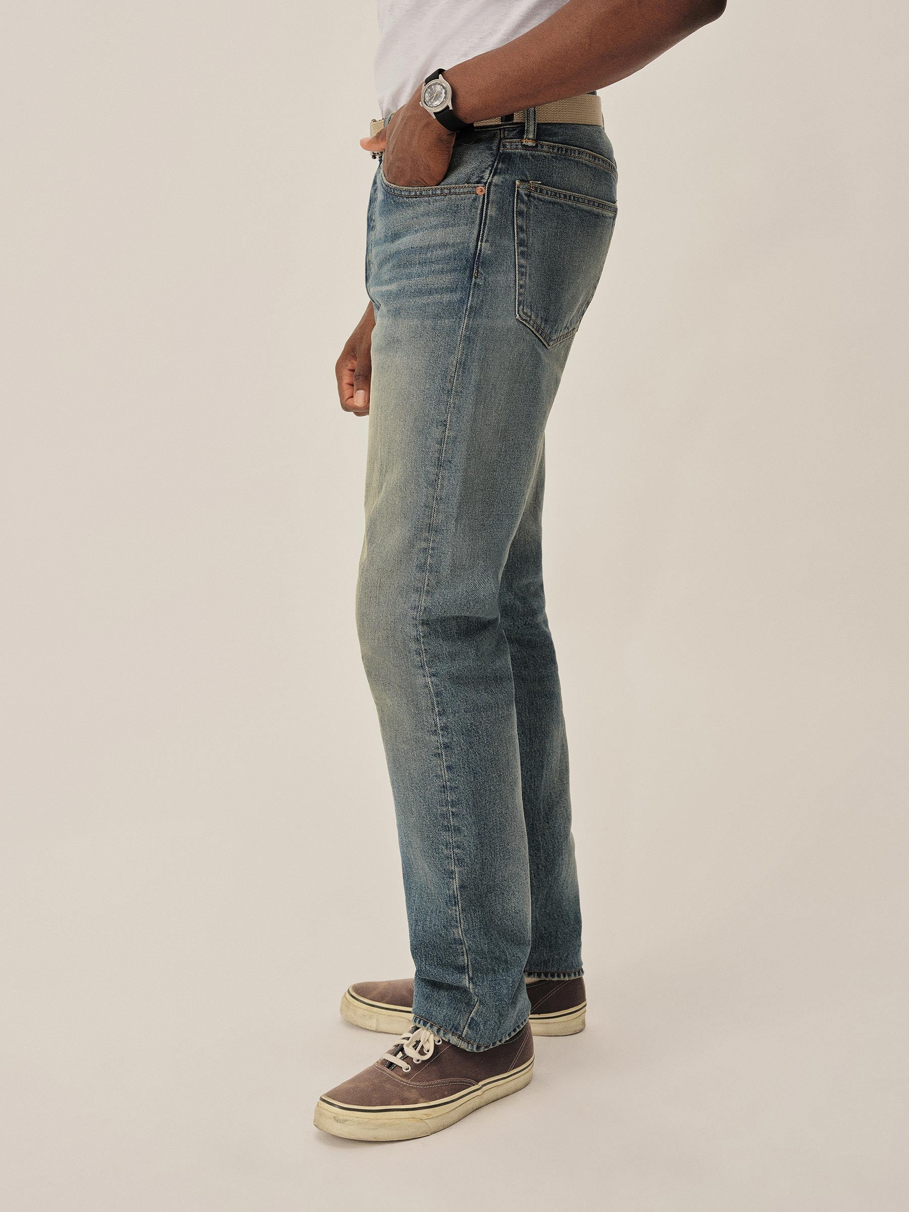 A classic 5-pocket jean in our Maverick Slim fit: Mid-rise with a clean, narrow fit through the thigh and leg. Button fly. Inspired by our favorite vintage jeans, this 14 oz denim from Japan-based Kaihara mills has a hint of stretch and an organic texture that develops more character with every wear. Garment rinsed for a lived-in feel. Details include copper rivets and a metal tack button fly.