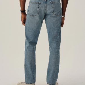 A classic 5-pocket jean in our Maverick Slim fit: Mid-rise with a clean, narrow fit through the thigh and leg. Button fly. Inspired by our favorite vintage jeans, this 14 oz denim from Japan-based Kaihara mills has a hint of stretch and an organic texture that develops more character with every wear. Garment rinsed for a lived-in feel. Details include copper rivets and a metal tack button fly.