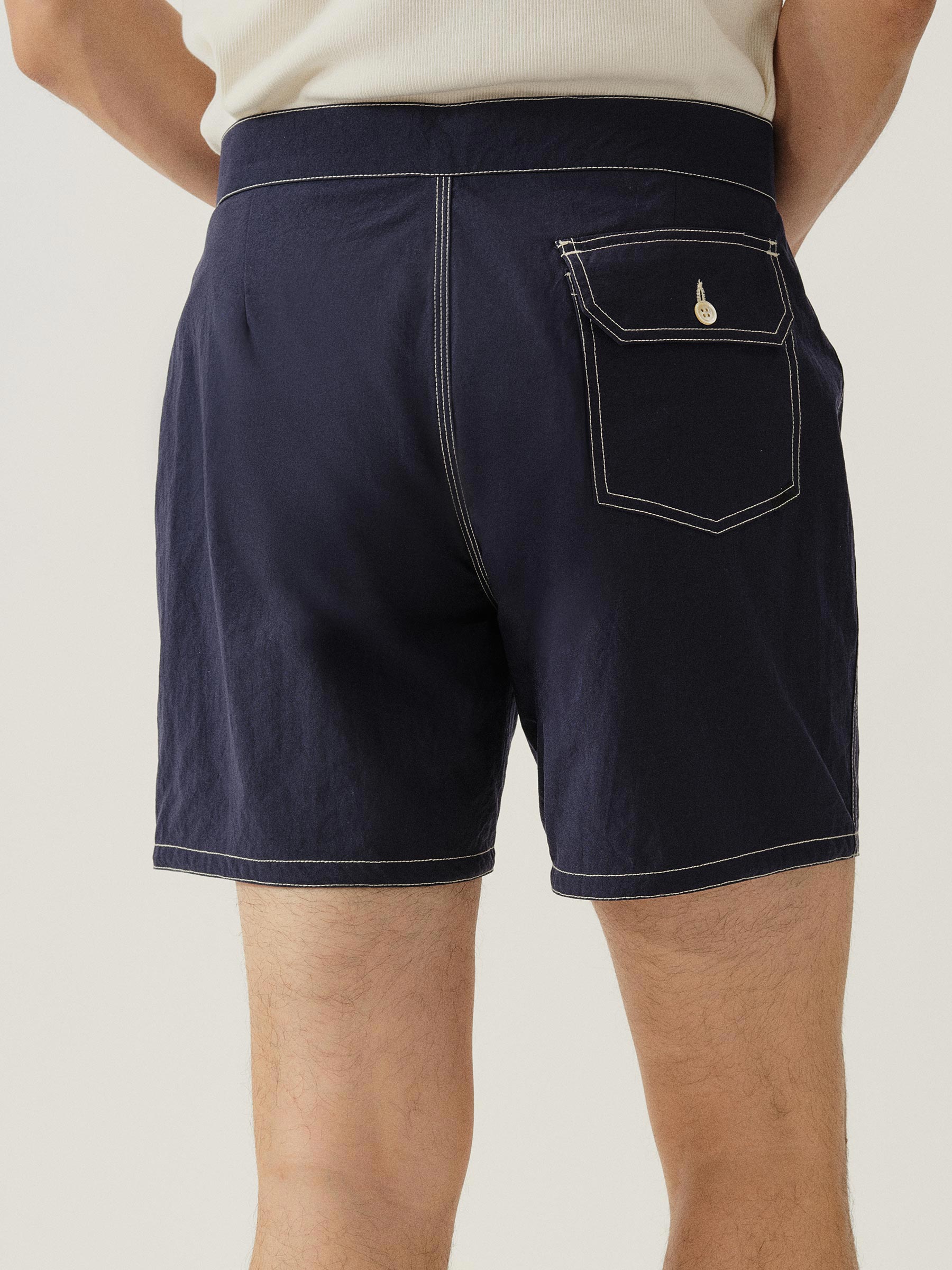 Inspired by the boardshorts of the 1960s, our boardshorts are made from lightweight 100% nylon fabric. They have a front tie closure to help adjust the fit and a single buttoned back pocket. 6-inch inseam.