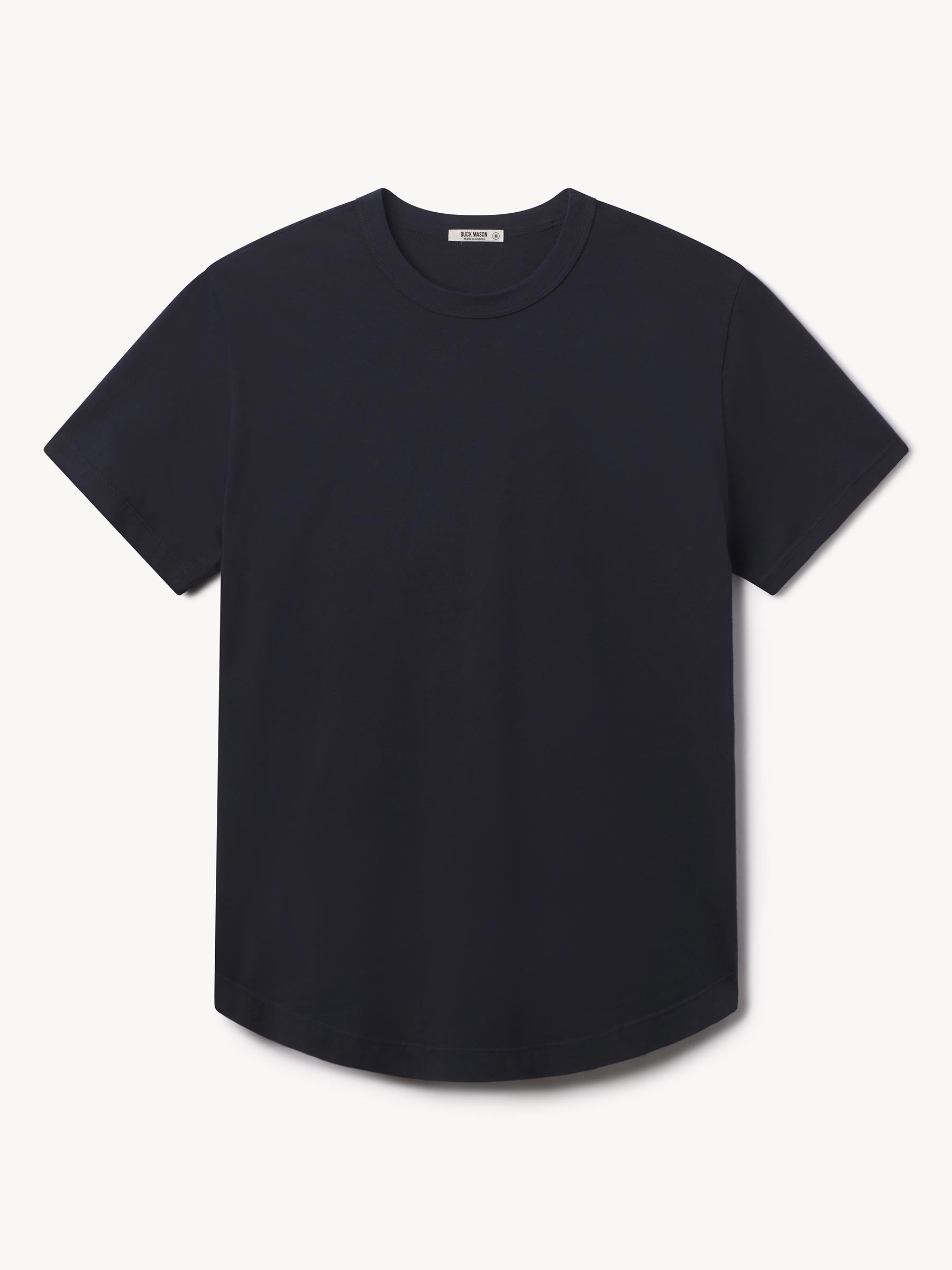 Classic fit short sleeve crewneck tee with our signature curved hem, cut from USA-grown and milled 140 GSM jersey knit from long-staple Supima cotton with a soft, smooth hand and sewn at BM Knitting Mills in Mohnton, PA. Constructed with self-neck binding and a flat stitch finish for comfort. Garment washed with enzymes and softener for a lived-in feel.