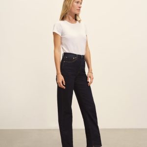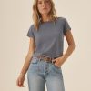Slim fit short sleeve crewneck tee with a straight hem in 120 GSM jersey, knit from long-staple Supima cotton. Constructed with a durable rib stitch collar and double-needle cover stitch hem. Garment washed with softener for a lived-in feel.