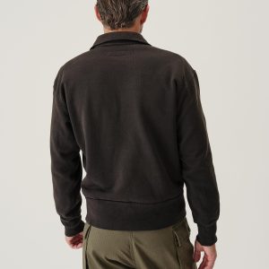 A midcentury-inspired quarter-zip collared sweatshirt made from plush, not-too-heavy, not-too-light, welterweight French terry. Features a foldover collar and front zip closure.