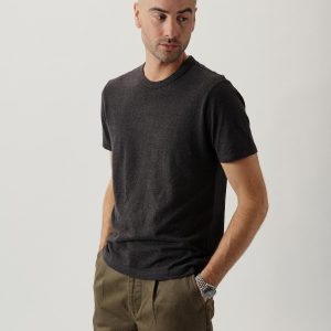 Classic fit short sleeve crewneck tee with a straight hem. Cut from a 190 GSM yarn-dyed hemp/cotton blend that wicks moisture and breathes easily. Garment washed for a lived-in feel.